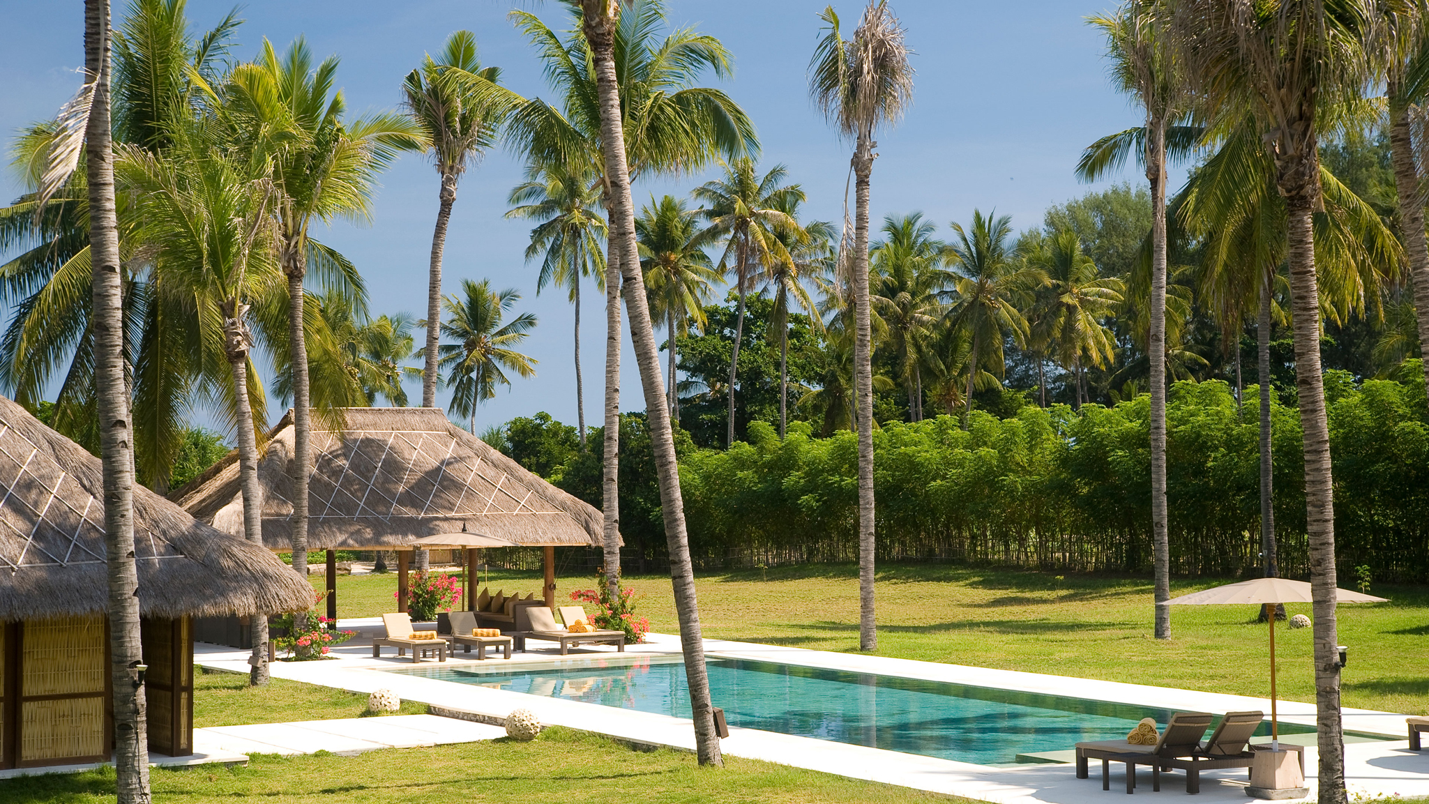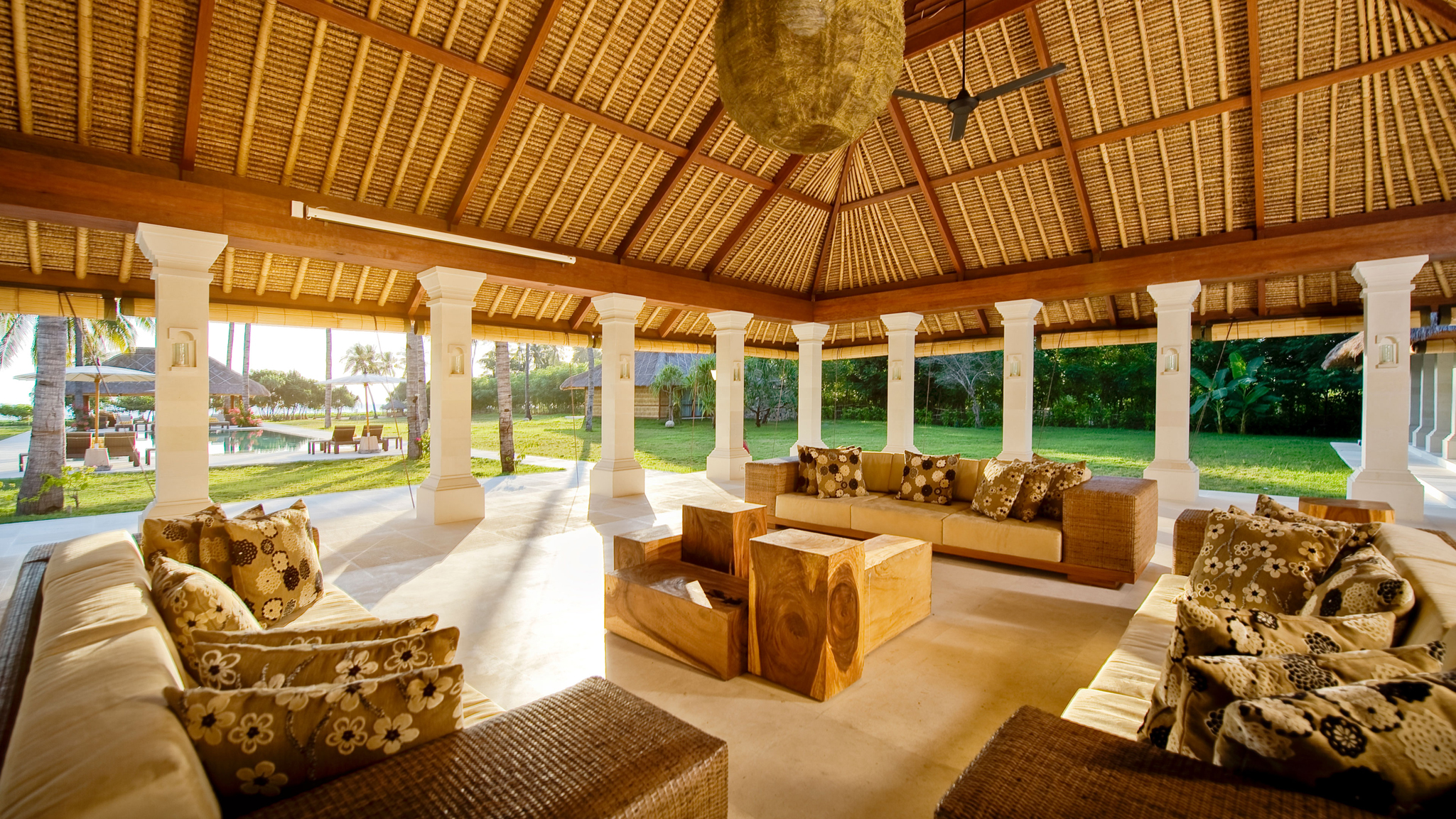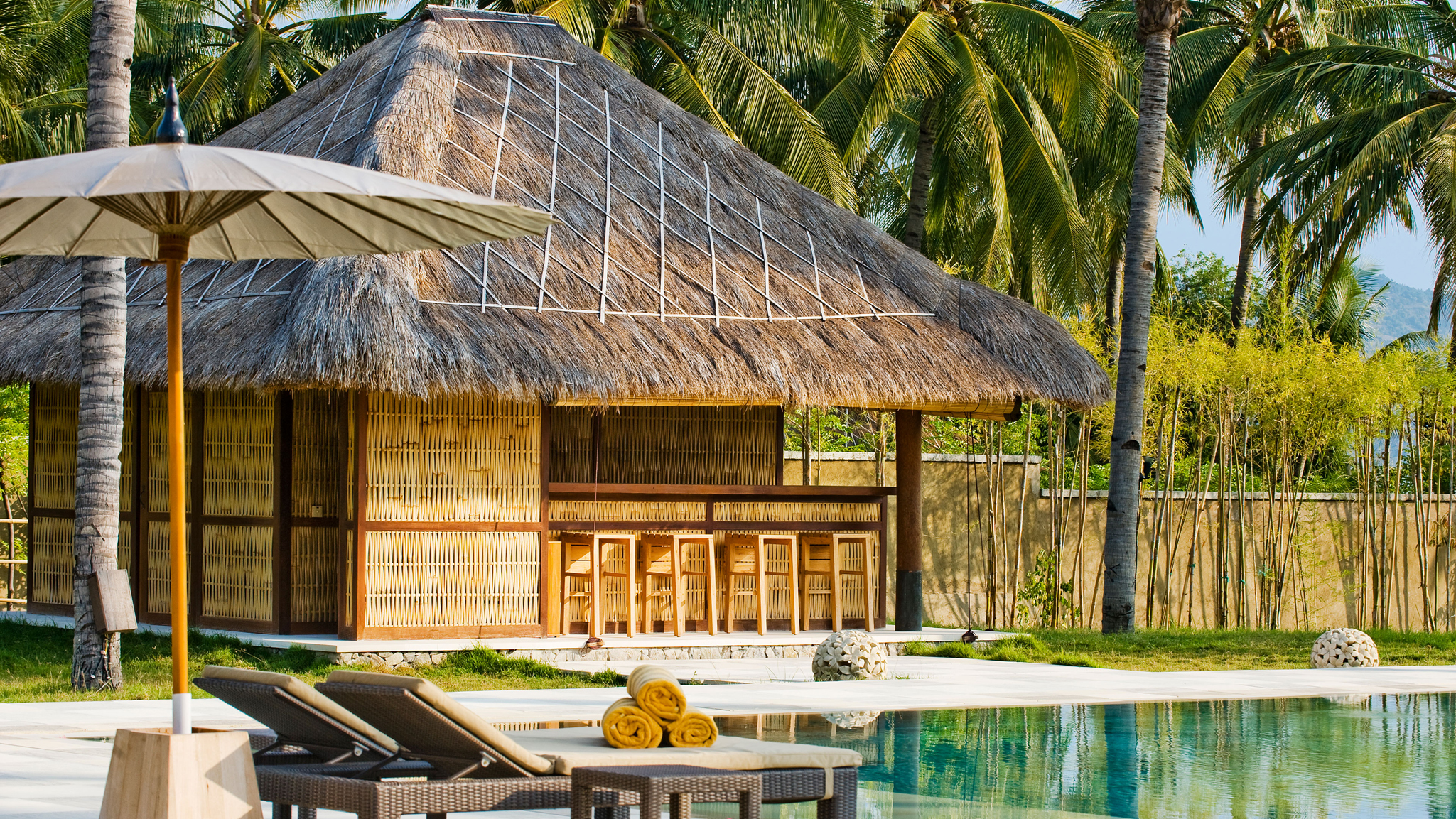 Villa Sepoi Sepoi - View of the pool bale and bar looking out to the sea